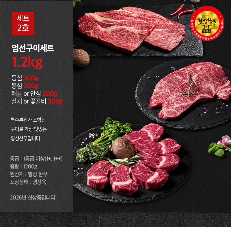 상품구성 등심(300g), 등심(300g), 채끝or안심(300g), 살치or꽃갈비(300g)